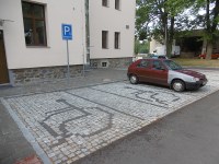 U zadního vstupu před výtahem se nachází dvě vyhrazená parkovací místa, povrch tvoří kamenné kostky. Přístup ke vstupu je bezproblémový.