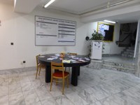 Zvonková signalizace opatřená piktogramem vozíku je umístěna na čelní zdi mezi dvěma vstupy (výška 138 cm). U vstupu pro veřejnost je vpravo v nice interkom na vrátnici (výška 141 cm).