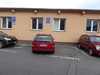 Cca 35 m od hlavního vstupu se na parkovišti u budovy „A“ nacházejí dvě vyhrazené parkovací místa. Problematický přístup přes bariérový přechod (Klimkovická ulice).