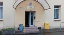 Vstup do budovy na podestu (šířka 136 cm, hloubka 100 cm) je bariérový (+ 3 schody). Hlavní vstupní dveře objektu jsou dvoukřídlé (průjezdová šířka hlavního křídla 60 cm, šířka vedlejšího křídla 67 cm), otevírají se mechanicky směrem dovnitř a mají práh (výška 5 cm vnější, 9,5 cm vnitřní). Zvonková signalizace (výška 113 cm) je umístěna pod schody vpravo na zdi a je označena piktogramem vozíku. Ze zádveří (šířka 302, hloubka 198 cm) vedou do interiéru další dvoukřídlé dveře (průjezdová šířka hlavního křídla 78 cm, šířka vedlejšího křídla 85 cm), otevírají se mechanicky směrem do zádveří a mají práh (výška 1,5 cm).