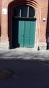Další vstup vede ze dvora do objektu zdravotní školy, ve kterém se nachází odbor výstavby. Před vstupem jsou umístěny schody (+3). Vstupní dveře jsou dvoukřídlé (průjezdná šířka hlavního křídla 60 cm, celková šířka 121 cm), mechanicky otevíratelné směrem do dvora a jsou opatřeny zavíračem dveří (BRANO). Za nimi se nachází schody (+5) vedoucí do zádveří (šířka 286 cm, hloubka 190 cm). Jednokřídlé dveře zádveří (šířka 90 cm, práh 0,5 cm) se mechanicky otvírají směrem do zádveří.