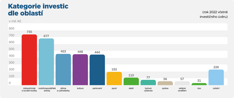 Mezi významné investice, které budou realizovány v roce 2022 náleží celá řada rekonstrukcí. Zmínit lze například rekonstrukci Domova Korýtko, dokončení rekonstrukce historické budovy bývalých jatek. Další investice jsou určeny k obnově Grossmannovy vily. V městské nemocnici bude mj. realizována rekonstrukce monobloku pavilonu E2 a výstavba stavebního objektu pro novou hyperbarickou komorou, bude pokračovat výstavba multifunkčního parkovacího domu. Město systematicky pokračuje v obnově vodohospodářské infrastruktury a dalším.
