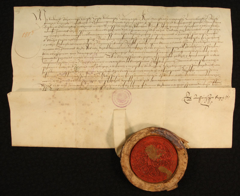 Na snímku: Listina Ludvíka Jagellonského udělující městu Ostravě právo na konání třetího výročního trhu