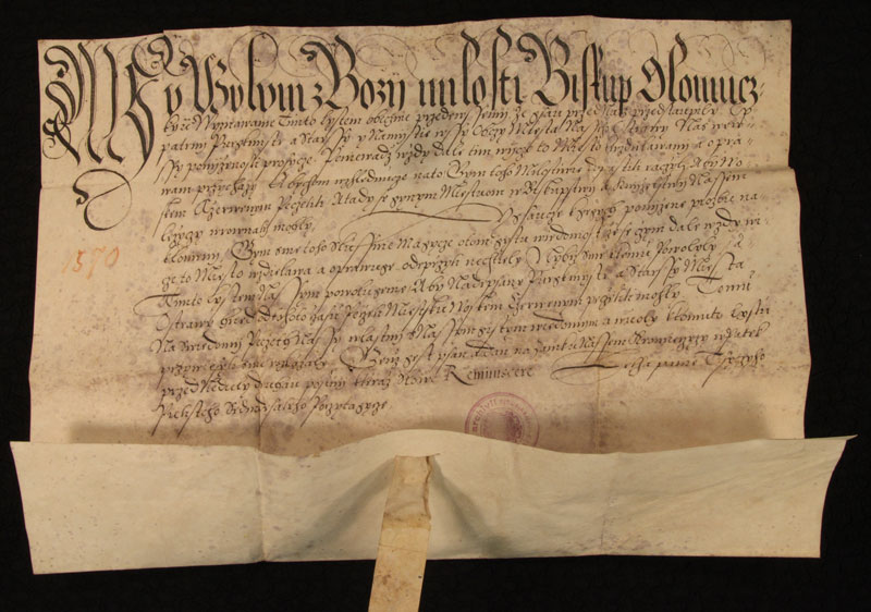 Dne 17. 2. 1570 je datováno privilegium olomouckého biskupa Viléma Prusinovského, kterým městu Moravské Ostravě udělil prestižní právo pečetit červeným voskem. Obdržené právo bylo uznáním městské radě za rozvoj města a znamenalo zvýšení prestiže a vážnosti ostravského práva v druhé polovině 16. století. Město používalo červeného vosku k pečetění důležitých listin, které se týkaly dědictví, dluhů, sporů o hranice a smluv. Jinak se pečetilo obyčejným včelím voskem. Tato významná událost byla z právního hlediska důvodem k pořízení nového, honosnějšího pečetního typáře. Město si nechalo zhotovit hned pečetidla dvě – větší a menší, jak to ostatně vyžadoval nárůst městské úřední agendy.