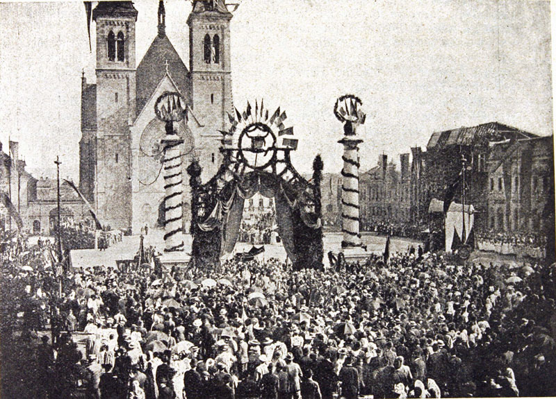 Foto: Kostel v Přívoze: Uvítání arcivévody knížete Evžena na náměstí v Přívoze u příležitosti vysvěcení kostela Neposkvrněného početí Panny Marie (1899)