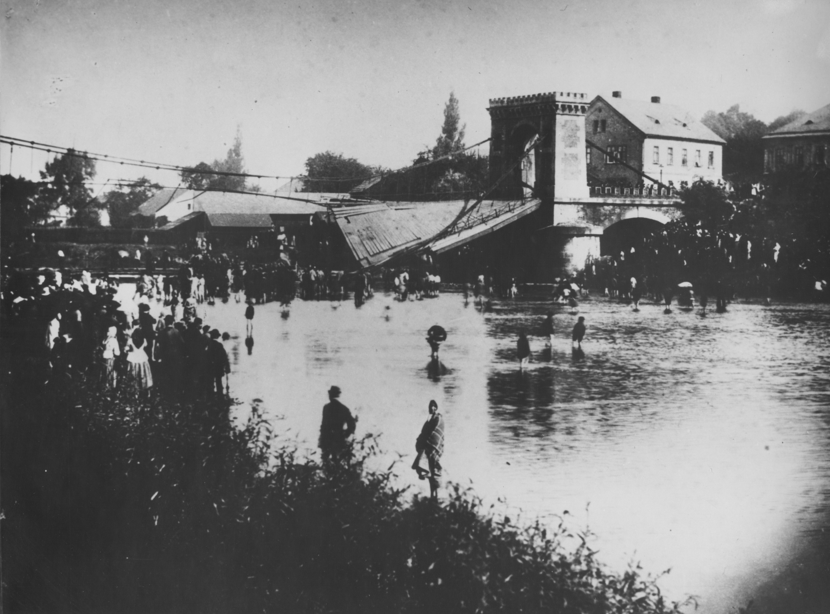 Dne 15. září 1886 se zřítil 123 metrů dlouhý řetězový most přes Ostravici spojující Moravskou a Polskou Ostravu postavený v roce 1851 podle návrhu ing. Josefa Seiferta. Neštěstí se odehrálo po 8. hodině ranní, když se po mostě přesouvala jednotka hulánů, z nichž někteří jeli na koních a další pochodovali. V té době se zde nacházelo také několik civilních osob a dva vozy, z toho jeden naložený uhlím. Pochod vojáků most rozkolísal a ten se vzápětí zřítil. Na místě zahynuly dvě děti, dvě ženy a následkům zranění podlehly později další dvě osoby. Z posudků, které byly součástí soudního líčení s předpokládanými viníky neštěstí, v první řadě s ing. Františkem Heinzem, který byl odpovědný za kontrolu mostní konstrukce, vyplynulo, že nosný řetěz mostu byl v místě výstupu z řetězové komory na moravskoostravské straně zrezavělý. Příčinou poškození bylo nahromadění průmyslových nečistot v nízko umístěných otvorech pro řetězy. Tato část mostu byla podle znalců navržena chybně a F. Heinz byl zbaven obvinění. Na místě spadlého Říšského řetězového mostu stojí od roku 1913 most ocelový nýtovaný, pojmenovaný po Miloši Sýkorovi zastřeleném během osvobozování Ostravy 30. dubna 1945.