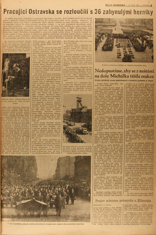 K foto: Deník Nová svoboda informuje 9. října 1950 o pohřbu obětí důlního neštěstí.