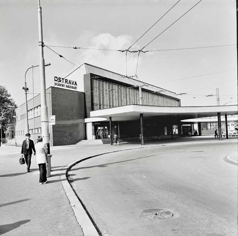 Dne 21. 2. 1975 byla do užívání předána nová, v pořadí třetí, budova železniční stanice Ostrava–hlavní nádraží v Přívoze, postavená podle projektu Lubora Laciny a Vlasty Douši. Příchod k hale je zastřešen pergolou s kruhovým světlíkem, do jehož středu je umístěna kašna s plastikou Vlna, jejíž autorkou je Sylva Lacinová. Prosklenému průčelí třípodlažní haly, ve kterém byly původně umístěny monochromní vitráže Oldřicha Vašici, dnes dominuje nápis OSTRAVA. Zároveň s nádražím byla otevřena budova pošty. Obě stavby jsou příkladem doznívání tzv. bruselského stylu.