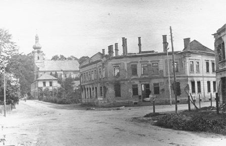 Foto: Obecní úřad v Porubě po náletech v dubnu 1945.