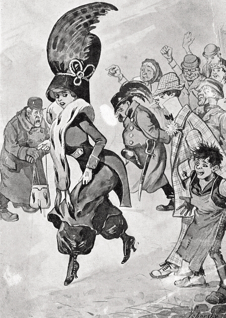 V neděli 19. 3. 1911 o půl dvanácté se na ostravské promenádě na Hlavní třídě objevila dáma v kalhotové sukni, nejnovějším módním výstřelku, který tehdy působil rozruch po celé Evropě. Za pár minut již odvážnou mladou dámu obklopovalo na 2 000 zvědavců, kteří se nezdrželi posměšných komentářů. Nakonec musela zasáhnout policie, která ženě razila cestu. Po půl hodině průkopnice nové módy z korza zmizela do postranní uličky. Roli modelky přijala jedna z prodavaček obchodu s módním zbožím Josefa Nohela, za jehož výkladní skříní na náměstí si mohli obyvatelé Ostravy kalhotový kostým prohlížet. Podle místního tisku se kalhotová sukně z modré lehké látky „vyjímala na slečně velmi pěkně" a bude prý „v Mor. Ostravě za krátko přijata s klidem a nezpůsobí již žádný rozruch". Na začlenění do běžné ženské módy si však kalhoty musely ještě počkat. Nošení kalhot ženami bylo tolerováno pouze při sportu, např. při jízdě na kole nebo lyžování.