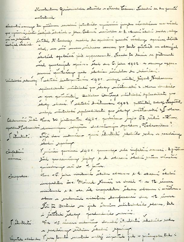 Text školní kroniky, který obsahuje informace z porady pro stanovení osnov vyučování německého jazyka v Moravské Ostravě (školní rok 1901/1902).