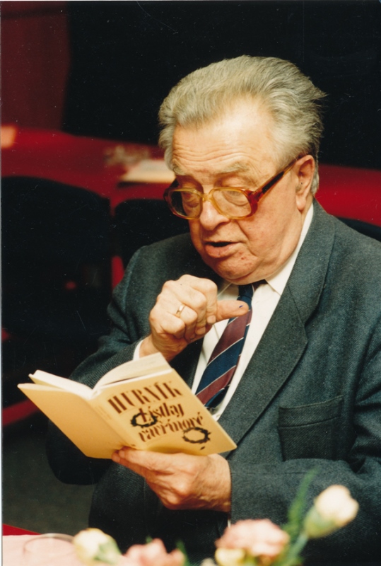 Ilja Hurník při autorském čtení v Press clubu hotelu Polský dům v Ostravě (1995).