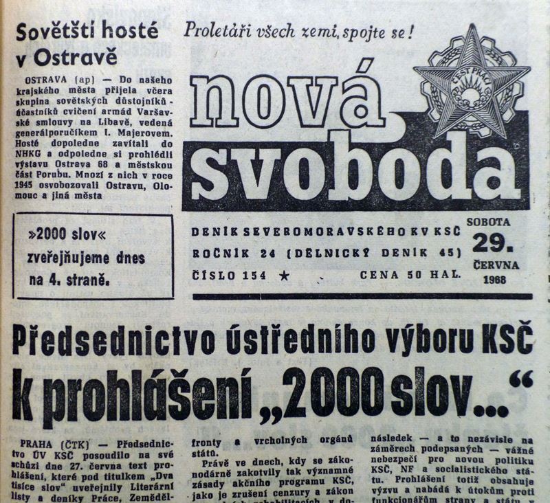 Nová svoboda zveřejnila text manifestu 2000 slov dne 29. 6. 1968.