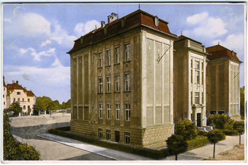 Budova horní školy na Kratochvílově ulici po roce 1918 (dnes Střední průmyslová škola elektrotechniky a informatiky Ostrava).