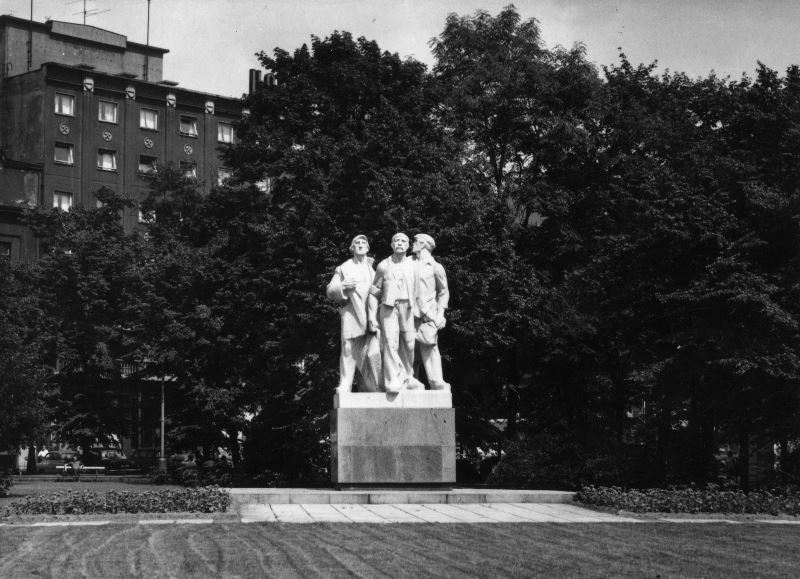 Sousoší dělníků, připomínající hornickou stávku na jámě Trojice z roku 1894, bylo instalováno na dnešním náměstí Dr. Edvarda Beneše v roce 1965 pod ideologicky zabarveným názvem Památník revolučních bojů. Dílo vznikalo již od počátku 50. let, kdy s ním V. Gajda vyhrál soutěž na památník, jenž měl být původně odhalen k 60. výročí stávky přímo před dolem Trojice ve Slezské Ostravě.