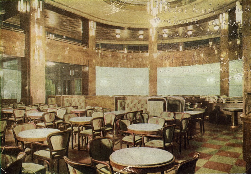 Interiér kavárny hotelu Palace (30. léta 20. století).