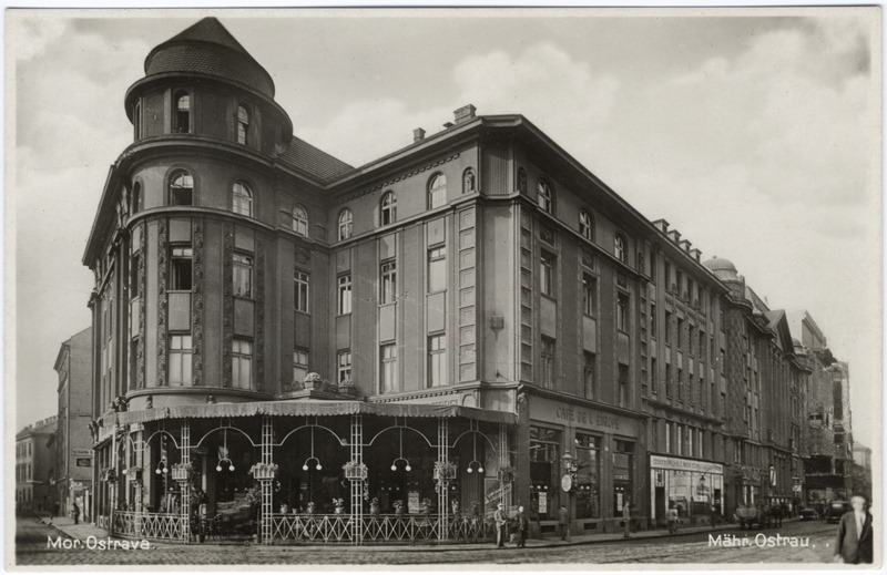 Dne 24. října 1912 mohli ostravští milovníci kávy navštívit novou kavárnu d´Europe na nároží dnešního Smetanova náměstí a třídy 28. října naproti divadla. V novostavbě projektované architektem Wunibaldem Deiningerem, žákem Otto Wagnera z vídeňské Akademie výtvarných umění, ji otevřeli manželé Elsa a Ferdinand Aufrichtovi. Kavárna s galerií umístěná v přízemí měla kromě nepostradatelných kulečníků a herny také cukrárnu s vlastní výrobou zákusků. V roce 1917 otevřeli majitelé v prvním patře známý bar Bílý havran. V roce 1932 získala Else Aufrichtová povolení zřídit z jednoduché venkovní terasy stálou zasklenou terasu, jejíž krytí bylo použito jako otevřená letní terasa v prvním patře. V roce 1936, kdy se název kavárny změnil na Opera, byla dřevěná terasa přeměněna ve zděnou stavbu a taneční místnosti v prvním patře byly rozšířeny přibráním stávající otevřené terasy.