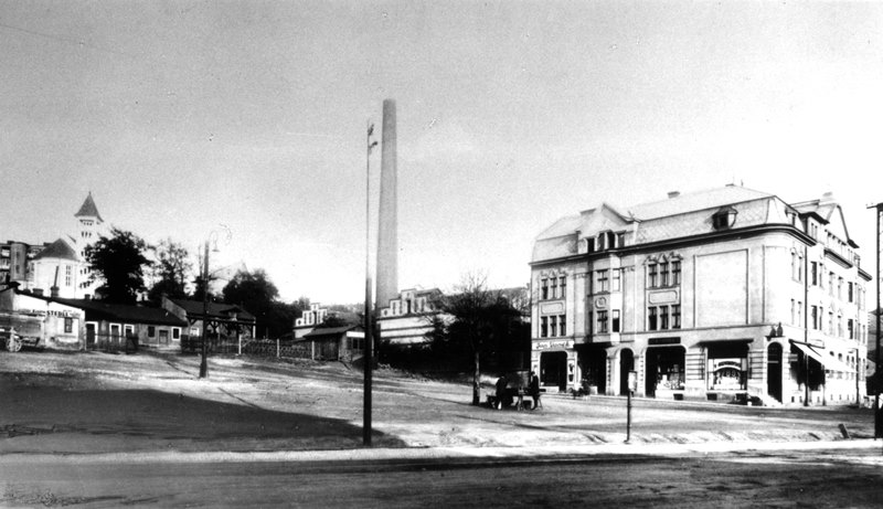 Pohled do míst, kde ve Slezské Ostravě (dnešní náměstí Jurije Gagarina) stával rodný dům spisovatele Zdeňka Jirotky (snímek z počátku 20. století).