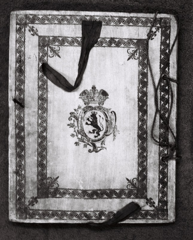 Listina císaře Františka II. (1795) pro Moravskou Ostravu ve formě pergamenové knihy o rozměrech 28 x 35 cm, zdobená na deskách dřevoryty císařského a českého znaku.
