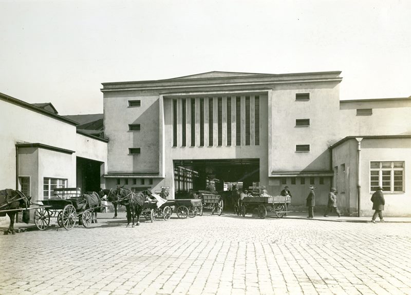 Hlavní vjezd do městských jatek v Moravské Ostravě (r. 1927).