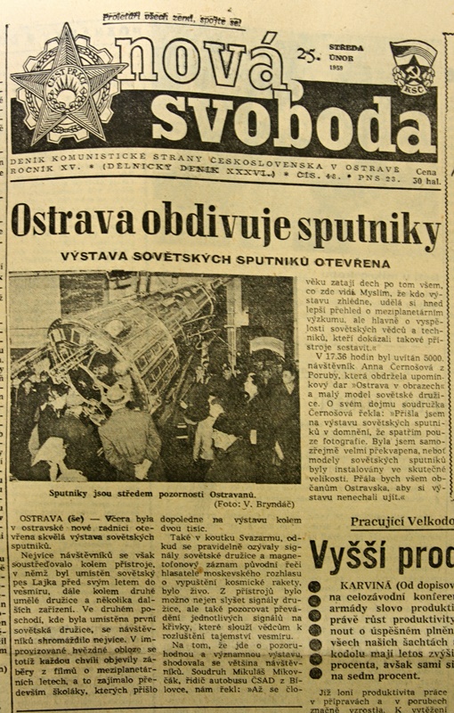 Dne 2. 3. 1959 byla v prostorách Nové radnice ukončena úspěšná výstava sovětských sputniků. Vesmírné přístroje instaloval v budově Nové radnice šedesátičlenný tým montérů a řemeslníků v rekordně krátké době – v průběhu jediné noci, aby ráno 24. 2. mohla být výstava zahájena. Nejvíce návštěvníků se soustřeďovalo kolem přístroje, v němž byl umístěn pes Lajka před svým letem do vesmíru. Ve druhém poschodí se lidem líbila umělá družice. Výstavu doplňoval koutek Svazarmu, kde bylo možné si poslechnout signály z družice nebo záznam v původní řeči hlasatele moskevského rozhlasu o vypuštění kosmické rakety.