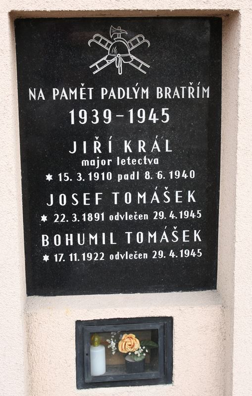 Pamětní deska mjr. Jiřího Krále a dalších obětí okupace, umístěná na budově požární zbrojnice v Ostravě-Polance n. Odrou. Pod deskou je uložena prsť z Králova hrobu ve Francii.