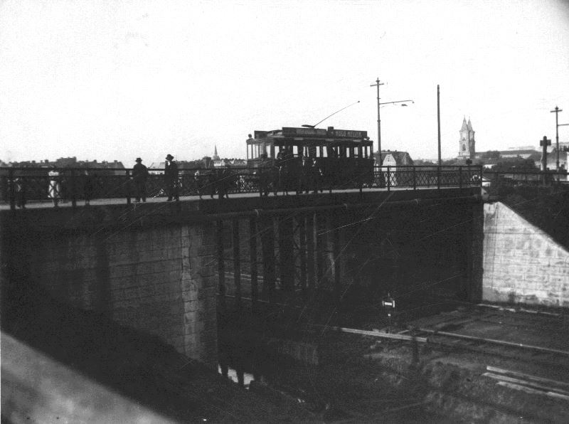Nadjezd místní dráhy z Moravské Ostravy do Mariánských Hor, předchůdce dnešních Frýdlantských mostů, po elektrifikaci tratě v roce 1901.