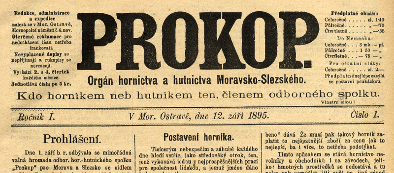 Část titulního listu prvního vydání dělnického listu Prokop.