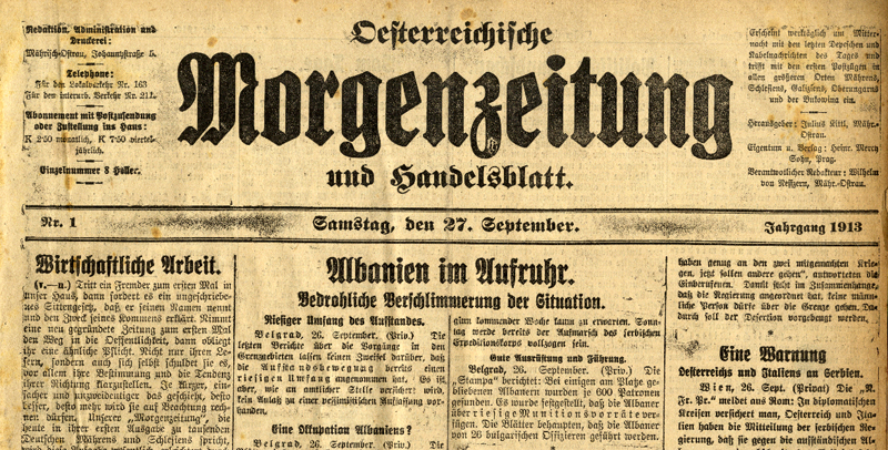 Titulní list prvního čísla novin Morgenzeitung und Handelsblatt (1913).