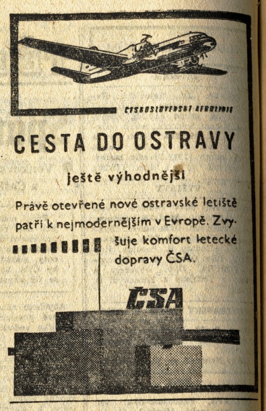 Inzerát z deníku Nová svoboda z roku 1959 propagující letiště v Mošnově u Ostravy.