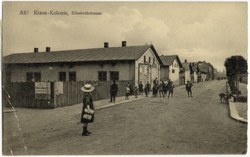 Pohled na Krausovu kolonii vystavěnou mezi lety 1870-1890 Alžbětinskou ulicí (dnes Českobratrská) směrem k Nádražní ulici, počátek 20. století.