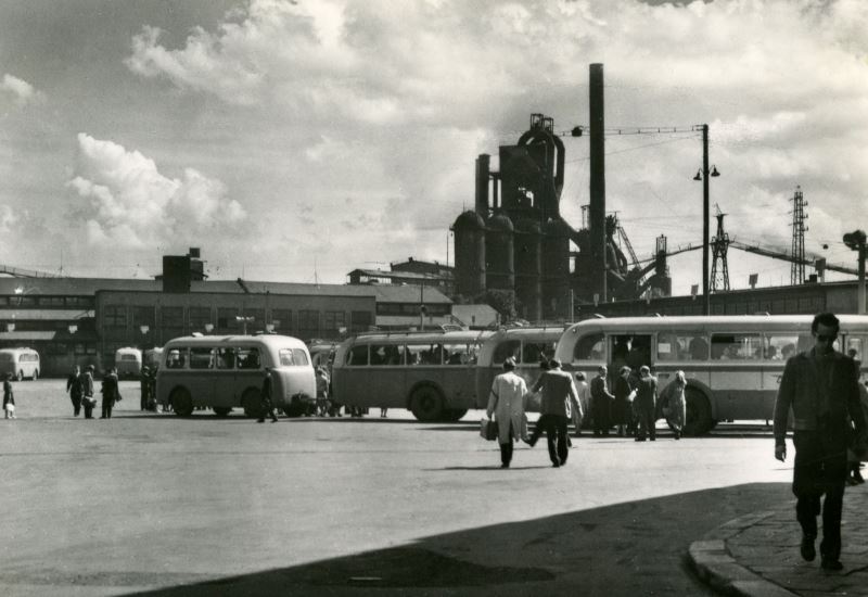 Pohled na Žofinskou huť z autobusového nádraží za dnešním Divadlem Antonína Dvořáka, 60. léta 20. století. Autor snímku: B. Holačka