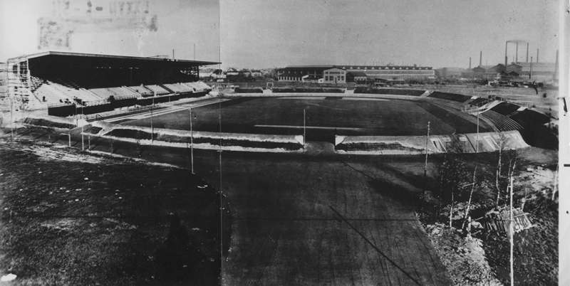 Celkový pohled na dokončený vítkovický stadion, listopad 1938.