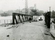 Rozvodněná Lučina v roce 1940, v pozadí těžní věž dolu Zárubek.