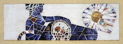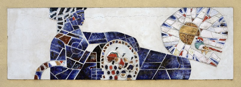 Bedřich Augustin Tkaczyk - Žena s ovocem, 60. léta 20. století; mozaika na zadní straně polyfunkčního domu u nároží Zeyerovy a Kostelní ulice.
