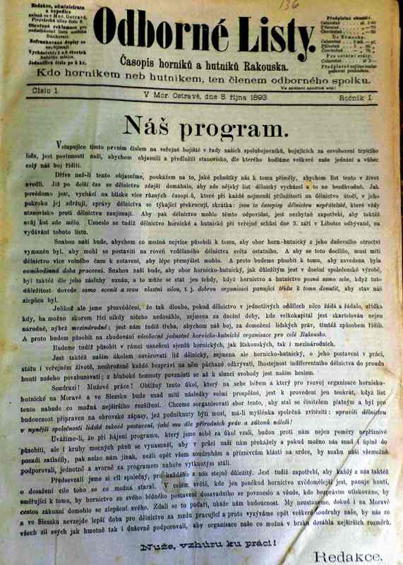 První číslo Odborných Listů, časopisu horníků a hutníků Rakouska, vyšlo vyšlo 5. října 1893. Od ledna 1894 se jednalo o časopis horníků a hutníků Moravy a Slezska. Jeho vydavatelem a odpovědným redaktorem byl odborový předák Petr Cingr, který krátce předtím přesídlil ze severních Čech na Ostravsko. Zpočátku se redakce nacházela v Pivovarské ulici v Moravské Ostravě, posléze na Hornopolním náměstí (dnes lokalita mezi Hornopolní a Kounicovou ulicí). Na úvodní straně prvního čísla byl otištěn program dělnického hnutí, jehož hlavním bodem bylo založení „všeobecné jednotné hornicko-hutnické organisace pro celé Rakousko“. Na Odborné listy, jejichž poslední číslo vyšlo 3. října 1895, navazovaly časopisy Prokop a poté Nazdar, jejichž odpovědným redaktorem se stal opět Petr Cingr.