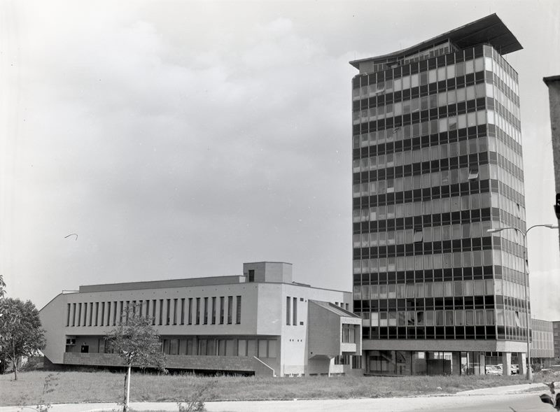 Kancelářská budova přezdívaná Černá perla v 70. letech 20. století.