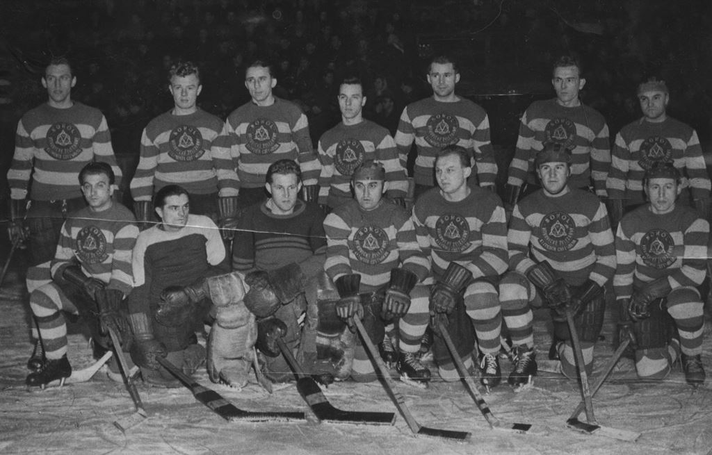 Mužstvo Vítkovic 19. 1. 1952 v Praze před závěrečným zápasem s Chomutovem, v němž vítkovičtí hokejisté výhrou 8:1 stvrdili zisk titulu. Stojící zleva: K. Piatkevič, O. Seiml, L. Staněk, Z. Návrat, M. Blažek, J. Schober, V. Bouzek. Klečící zleva: S. Garstka, M. Hromniak, Z. Nachmilner, B. Otte, V. Bubník, F. Planka, O. Pavlík. Z hráčů mistrovského týmu schází na snímku jen E. Remiáš.