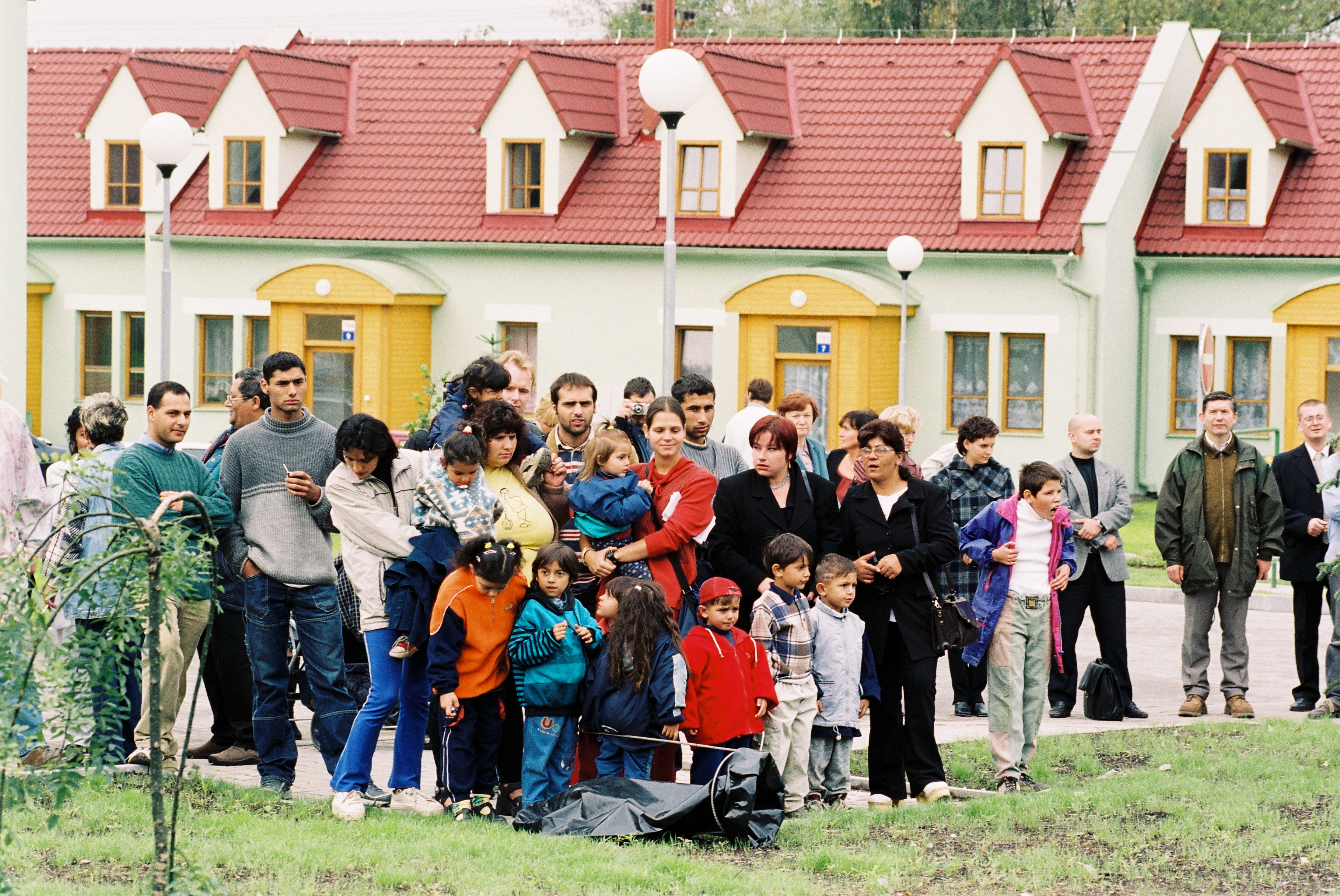 Foto: Občané shromáždění na slavnostním otevření Vesničky soužití 17. 9. 2002