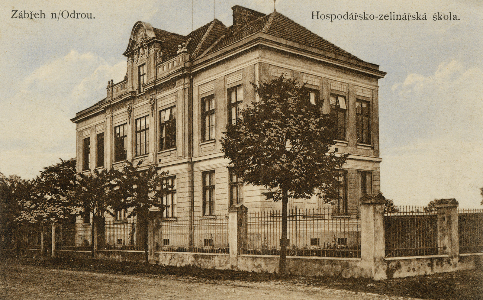 Hospodářsko-zelinářská škola v Zábřehu nad Odrou na pohlednici z roku 1911.