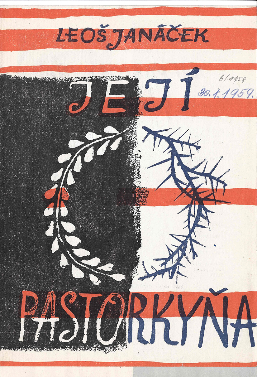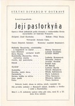 Program ostravského divadla s obsazením opery Její pastorkyňa, premiéra 15. 6. 1958, kde vystupovala i pěvkyně Helena Zemanová.