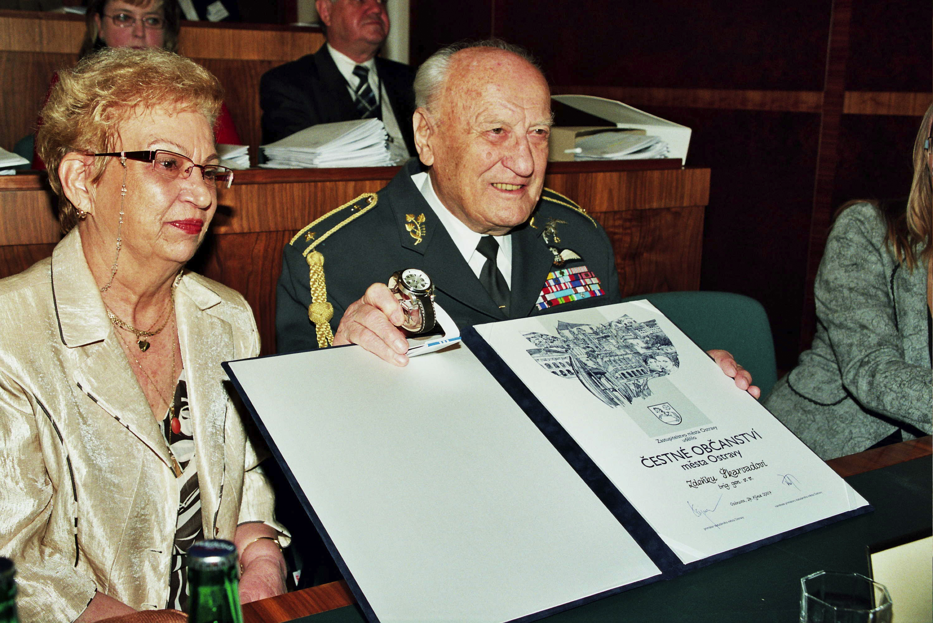 Zdeněk Škarvada se svou manželkou po převzetí čestného občanství města Ostravy v roce 2007.