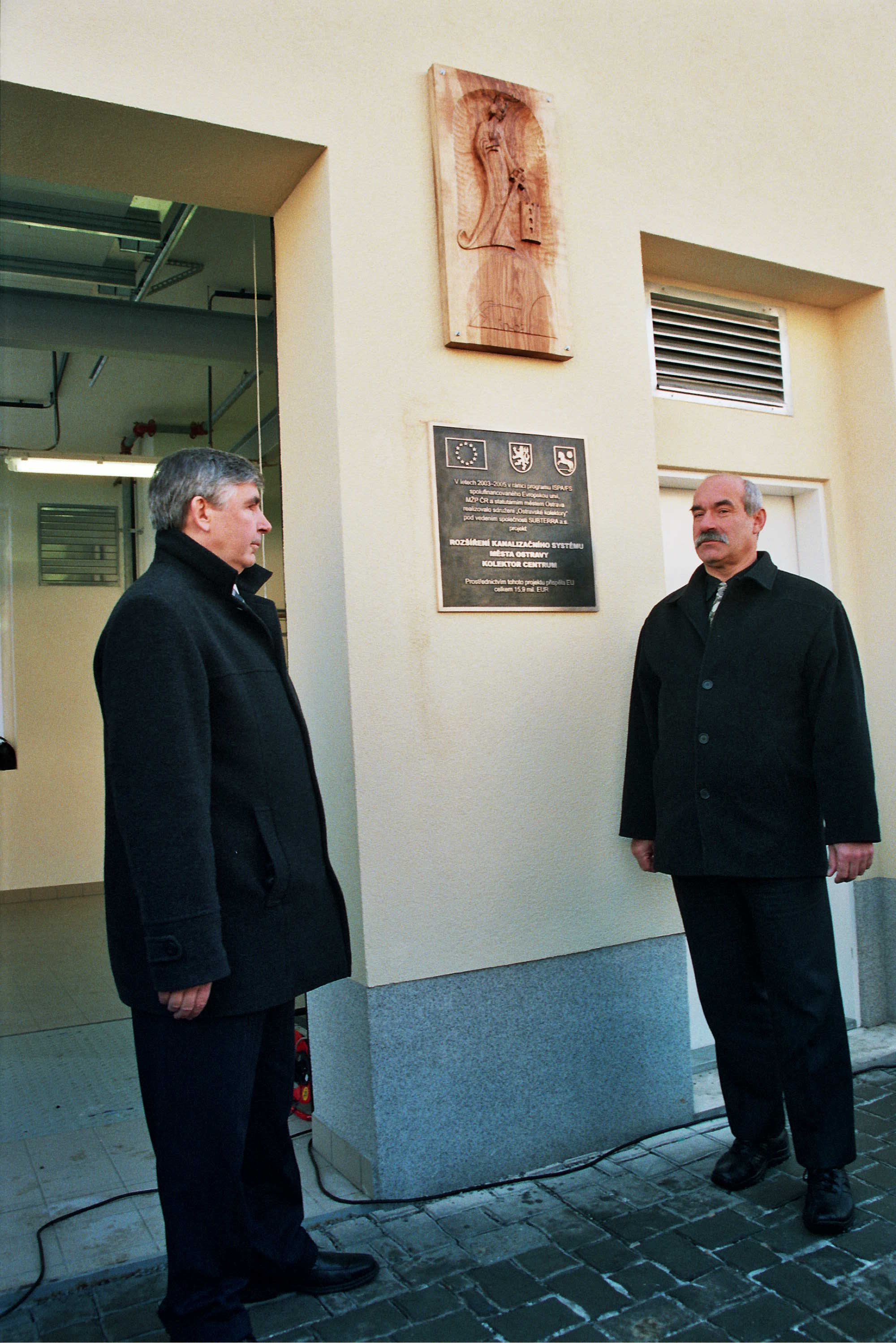 Slavnostní odhalení pamětní desky při dokončení stavby Kolektoru Centrum v lednu 2006 na ulici Biskupská.