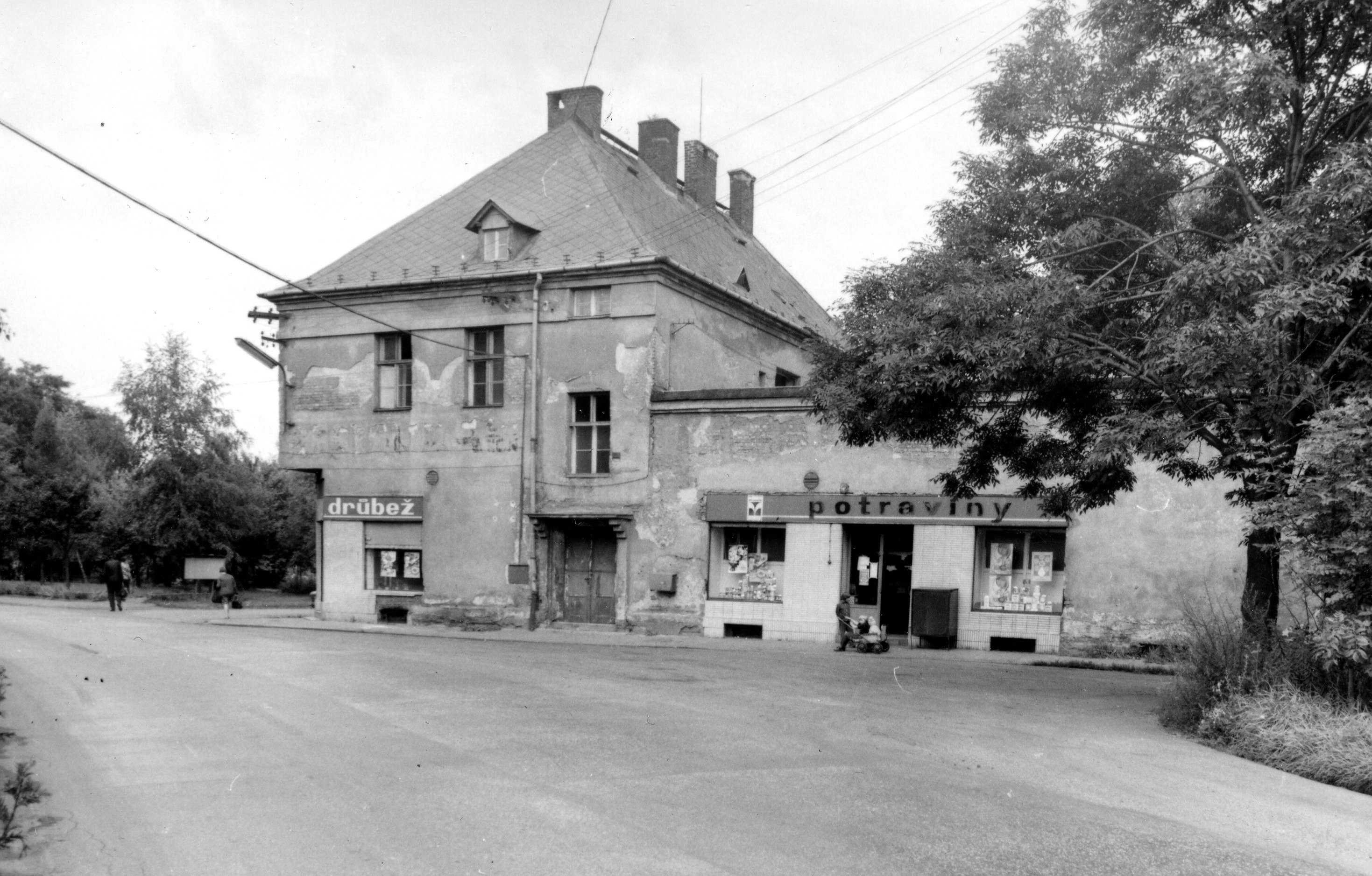 Obchod potravinami v budově bývalého Rosenblumova hostince v osadě Oderka, 1979 (dnes demolováno).