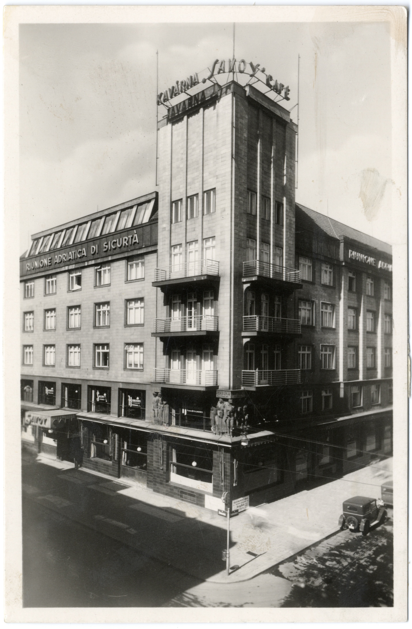 Dne 1. března 1930 zahájila pod vedením ostravského kavárníka Josefa Semkoviče svůj provoz ostravská kavárna Savoy. Nacházela se v obchodním a obytném domě na rohu ulic Zámecké a Puchmajerovy, který nechala v roce 1928 vystavět pojišťovna Riunione Adriatica di Sicurita se sídlem v Terstu (Itálie). V přízemí byla zřízena velká kavárenská místnost a oddělení pro nekuřáky a cukrárna. V prvním patře byly umístěny kulečníky, herny a klubovna. Nechyběl velký výběr novin a časopisů. Od května do konce září provozovala kavárna letní zahrádku. V kavárně se denně odpoledne i večer konal koncert. Česko-německý čtyřicetistránkový nápojový a jídelní lístek, který nechal J. Semkovič vytisknout vlastním nákladem v knihtiskárně Ed. Riedla, nabízel hostům 1220 skladeb, které měl orchestr kavárny ve svém repertoáru. Po druhé světové válce byl v kavárně Savoy zřízen obchodní dům Albina Chamrada.