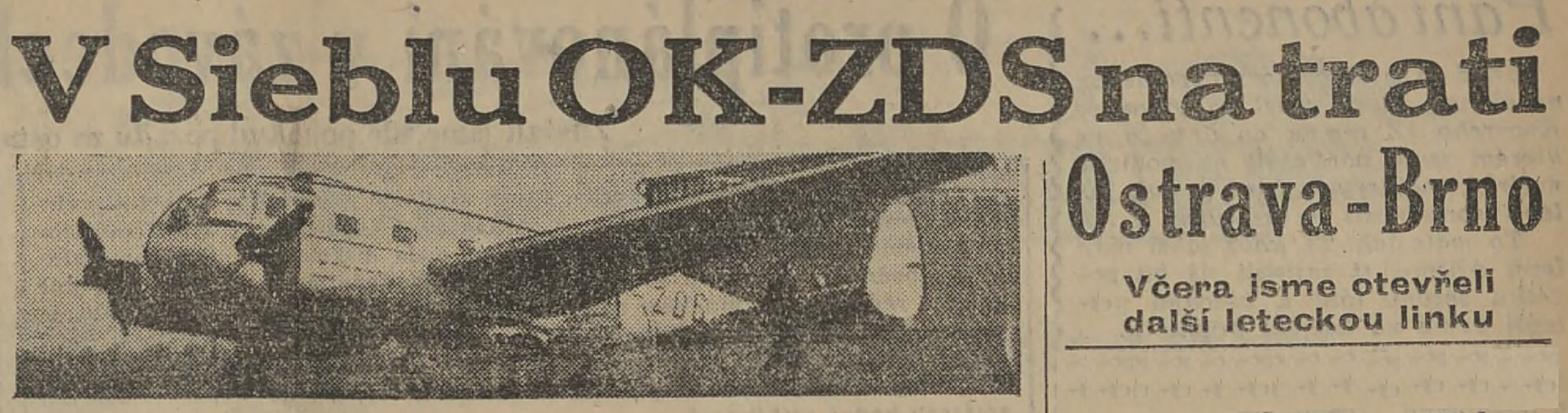 V pondělí 19. dubna 1948 bylo prvním letem slavnostně zahájeno letecké spojení Ostravy a Brna. Dopravu zajišťoval letoun značky Siebel (stroj původně německý, jenž se však po 2. světové válce vyráběl v různých modifikacích také v ČSR) s dvoučlennou posádkou, který nabízel místa pro devět cestujících. Zdolání této poměrně krátké trasy trvalo zhruba 35 minut, přičemž linka měla z Ostravy a z Brna létat dvakrát denně. Deník Nová svoboda k tomu poznamenal: „Tak linka tu je. Teď jde jen o to, aby byla řádně využita… Pražská linka byla v březnu využita jen na 38 procent. A přitom se nedá srovnávat cesta letadlem s cestou autem nebo dokonce vlakem.“