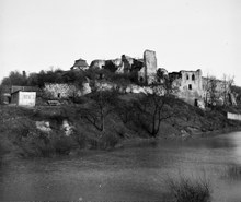 Pohled na slezskoostravský zámek od řeky Lučiny v první polovině 20. století.