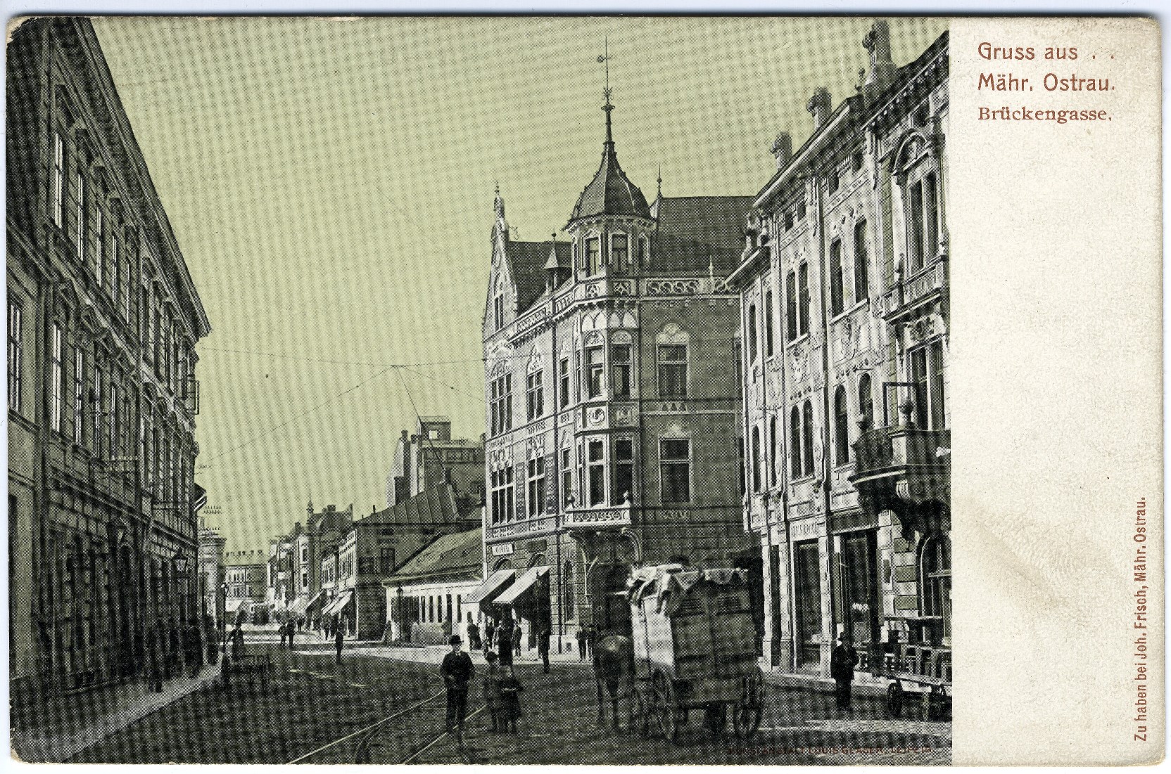 Nejstarší telefonní ústředna v Moravské Ostravě se nacházela v budově c. k. Poštovního a telegrafního úřadu (na snímku vlevo), který se nacházel na tehdejší Mostní ulici. Dnes se v těchto místech kříží Biskupská ulice s ulicí 28. října.