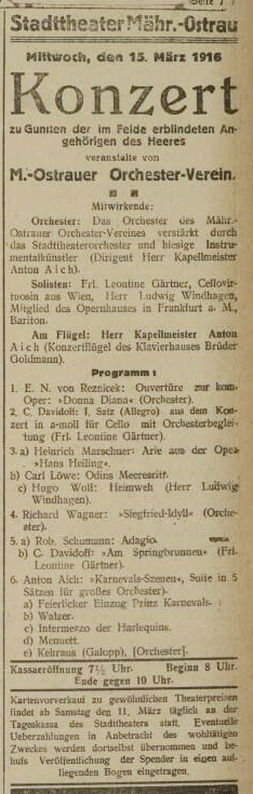 Sken z novin Ostrauer Zeitung: Tagblatt, 12. 3. 1916, pozvánka na koncert