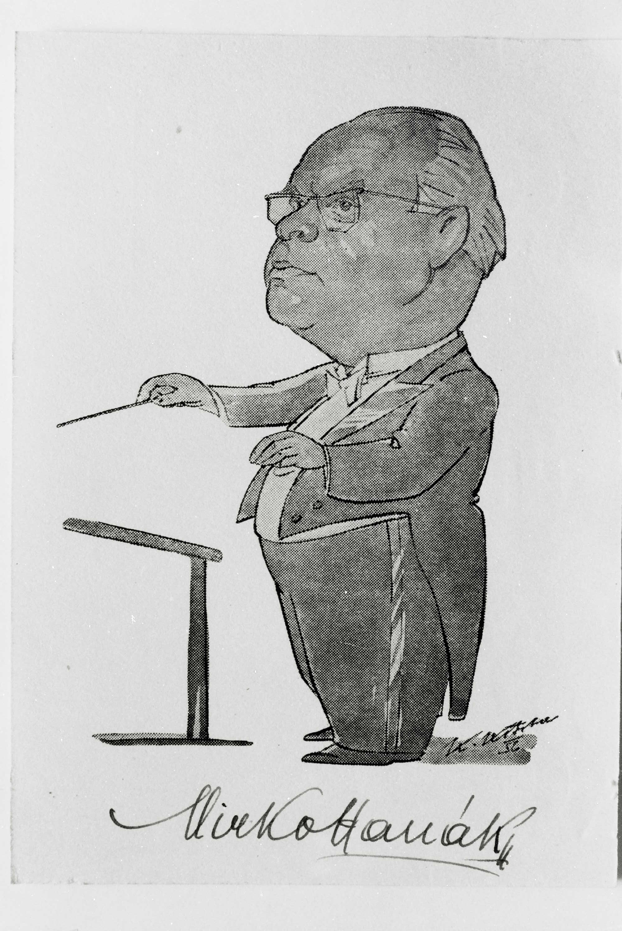 Karikatura dirigenta Národního divadla moravskoslezského Mirko Hanáka, 1932